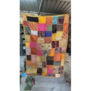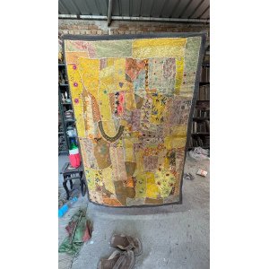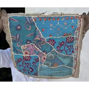 Indian Old Hand Made Embroidery Patchwork Mirror Work Home Wall Decorative Cover