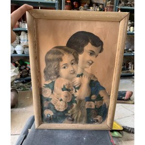 1970’s Old Vintage Lithograph Print Of Mother & Child Wooden Framed 14.5×10.5″