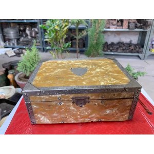 Vintage Old Handcrafted Wooden Jewelry Box Trinket Box w/ Brass Fitted Work