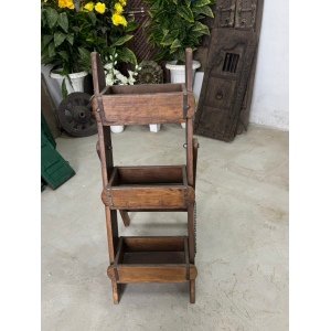 Vintage Old Hand Crafted Wooden Ladder Drawer Moveable Book Rank Stand 35″