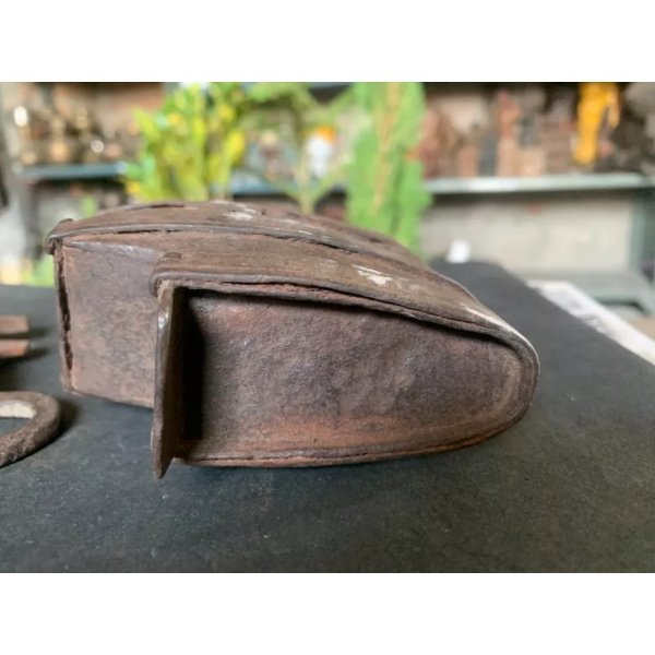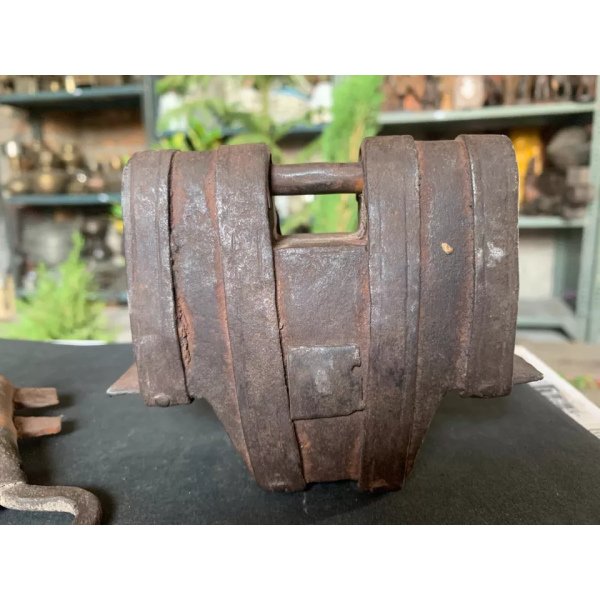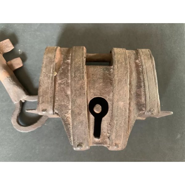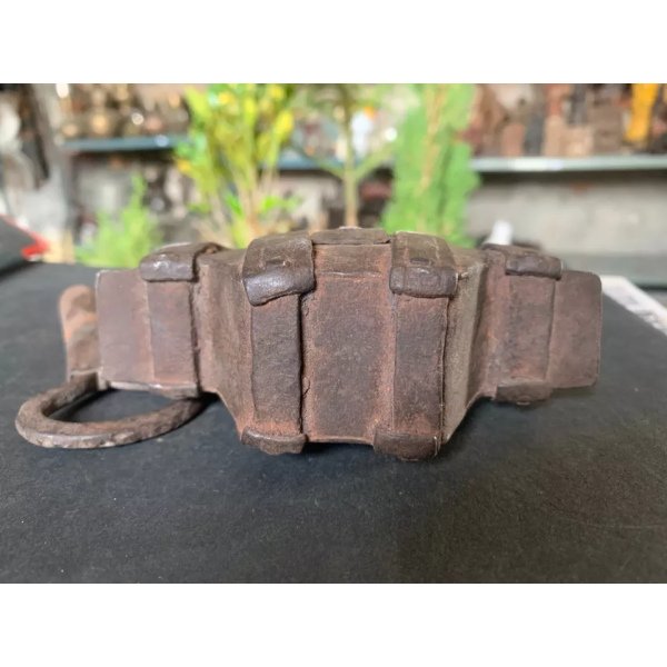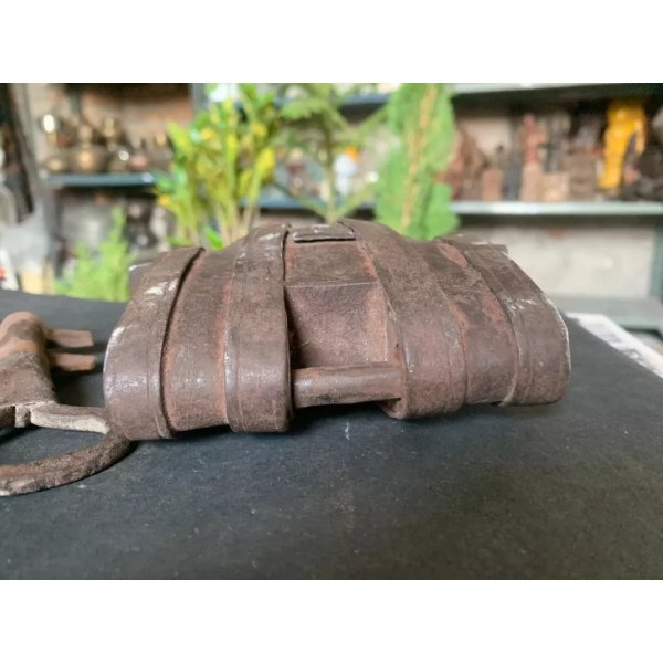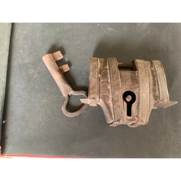 1800th C Antique Rare Hand Forged Iron Heavy Safety Padlock With Working Key