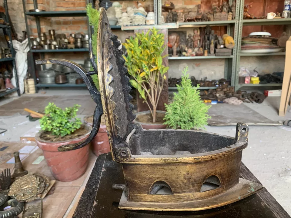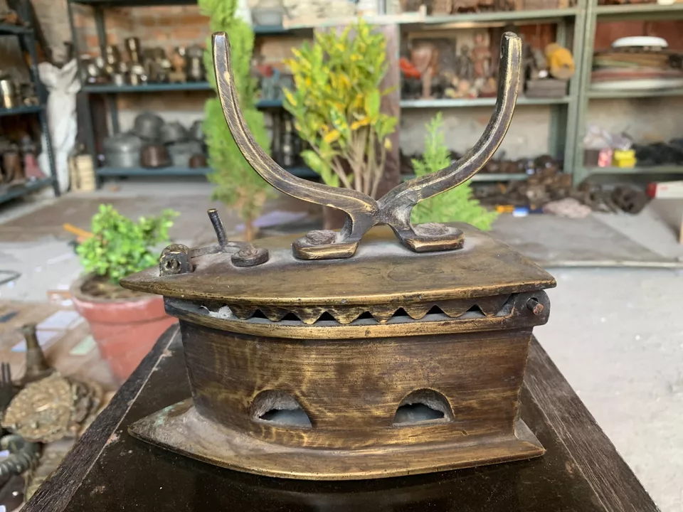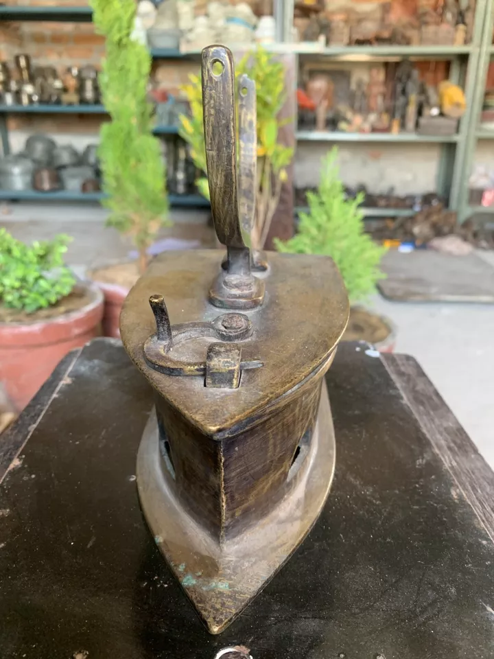 18’s Antique Handcrafted Brass Old Charcoal Iron Clothes Ironing Press W/ Handle