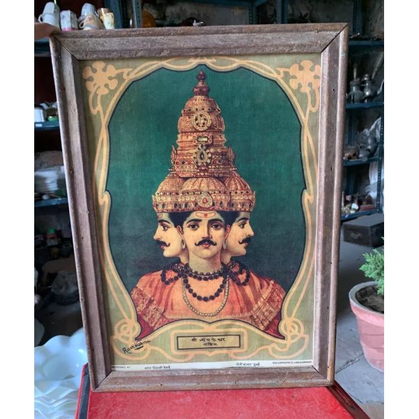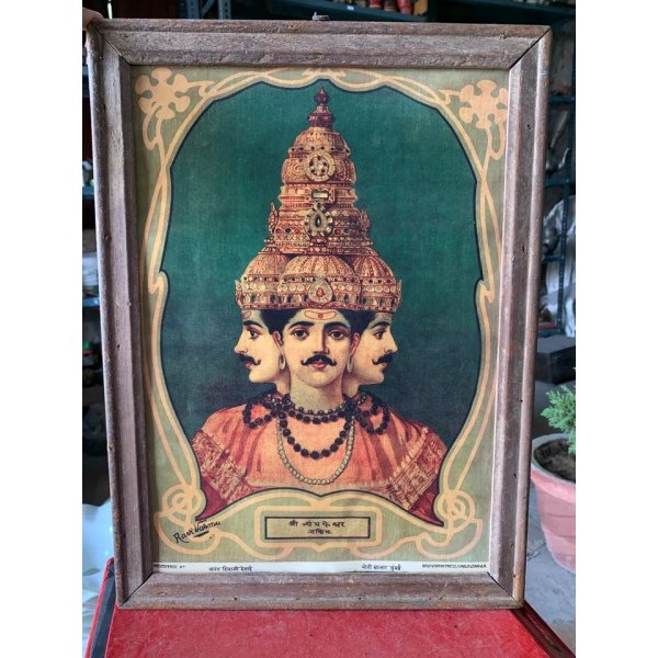 1920 Vintage Lithograph Print Of Shri Trayambakeshvara by Raja Ravi Varma Framed