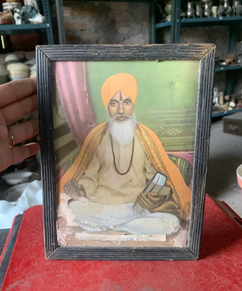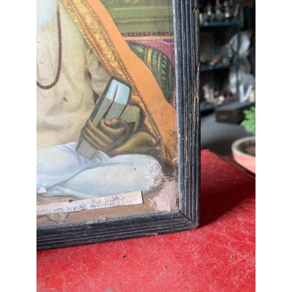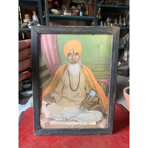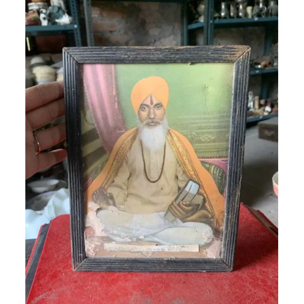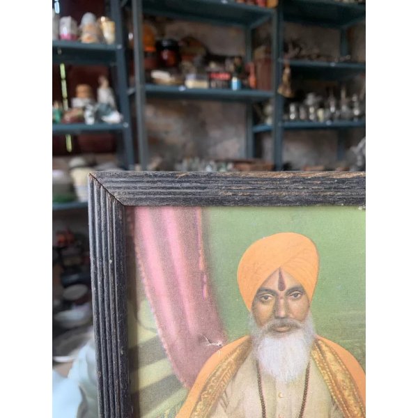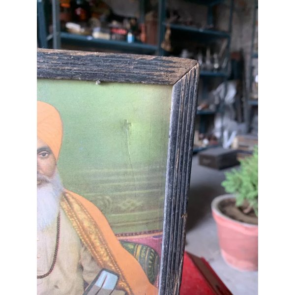 1950 Old Vintage Rare Sikh Religious Saint Guru Portrait Print Framed 8.5×6.5″