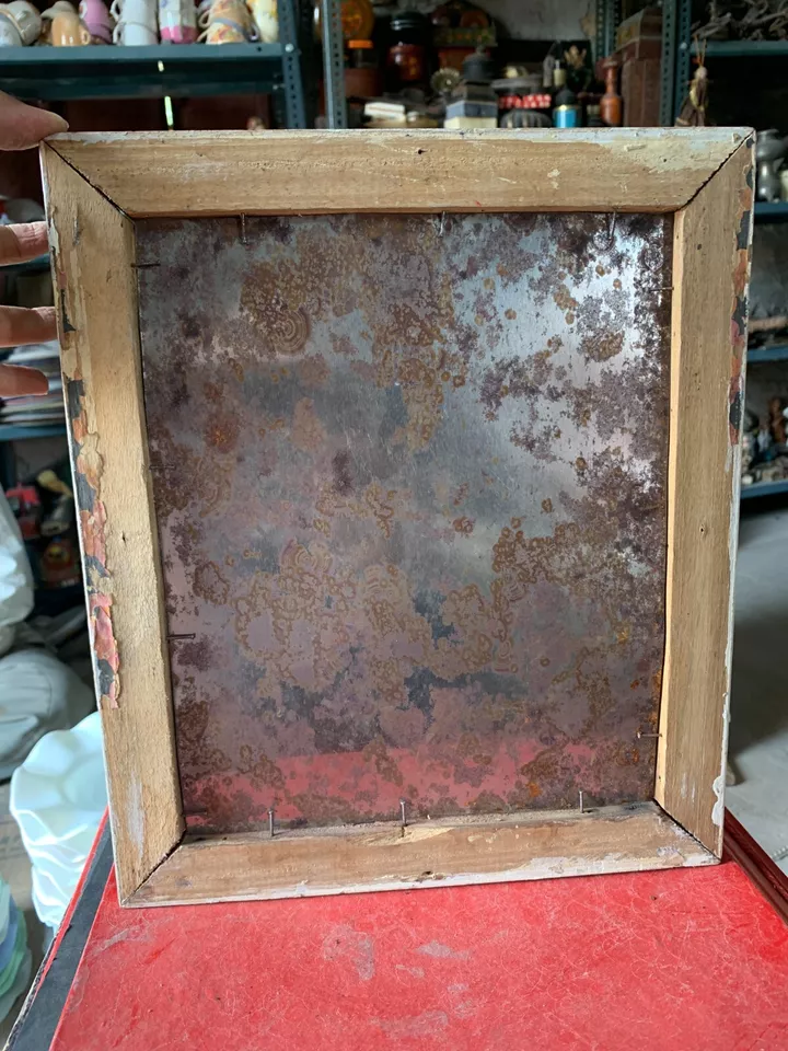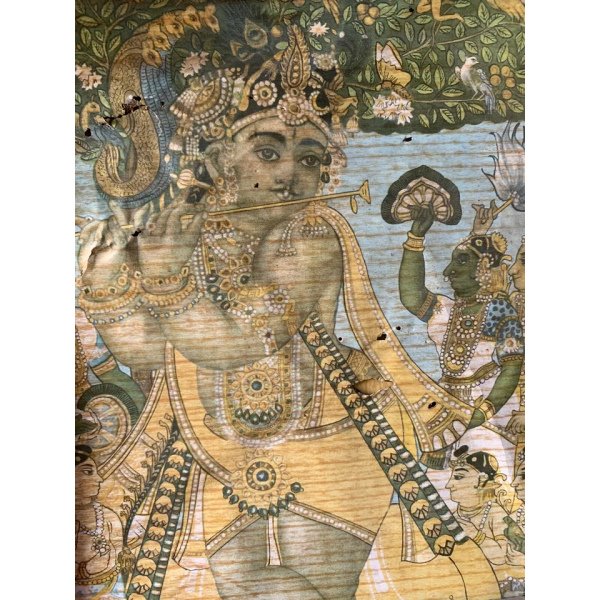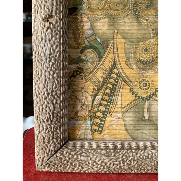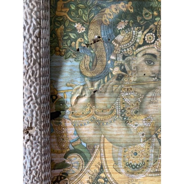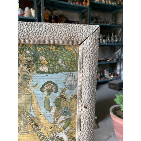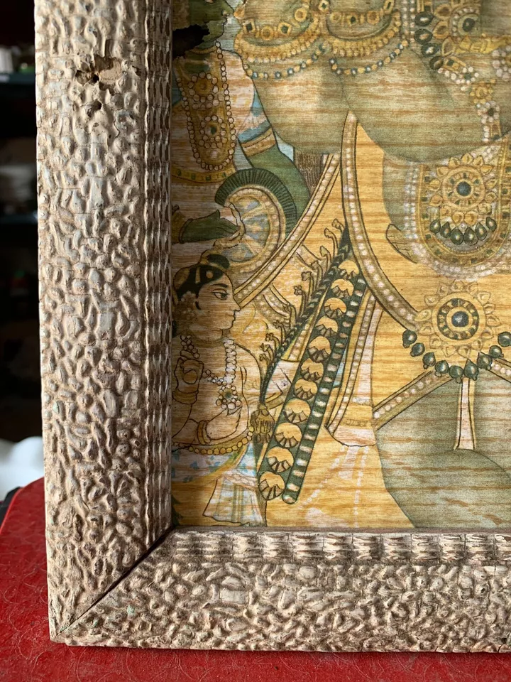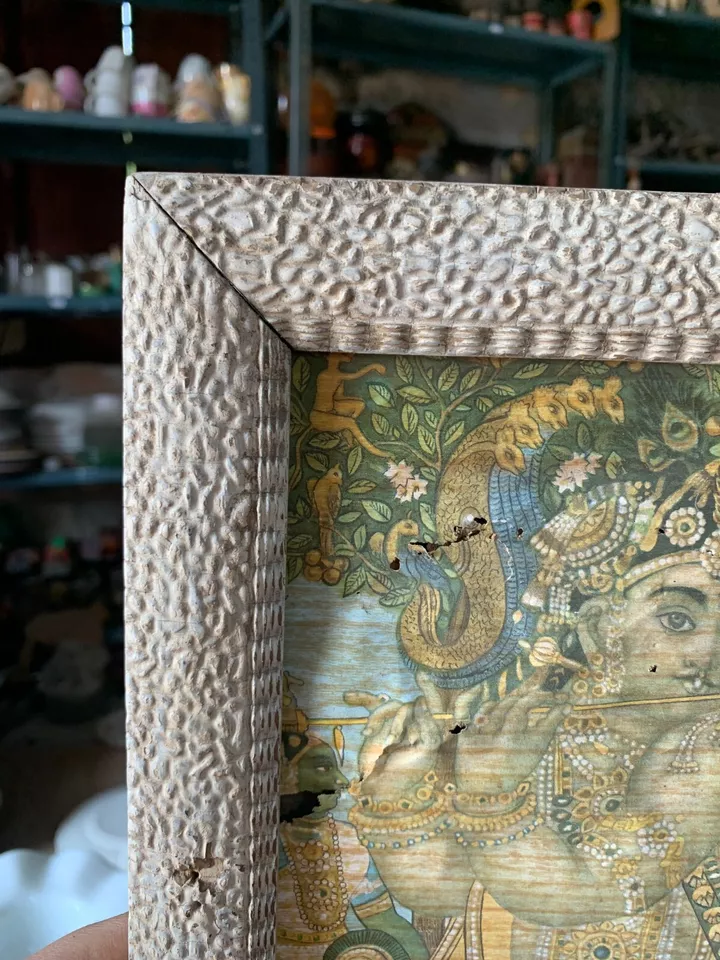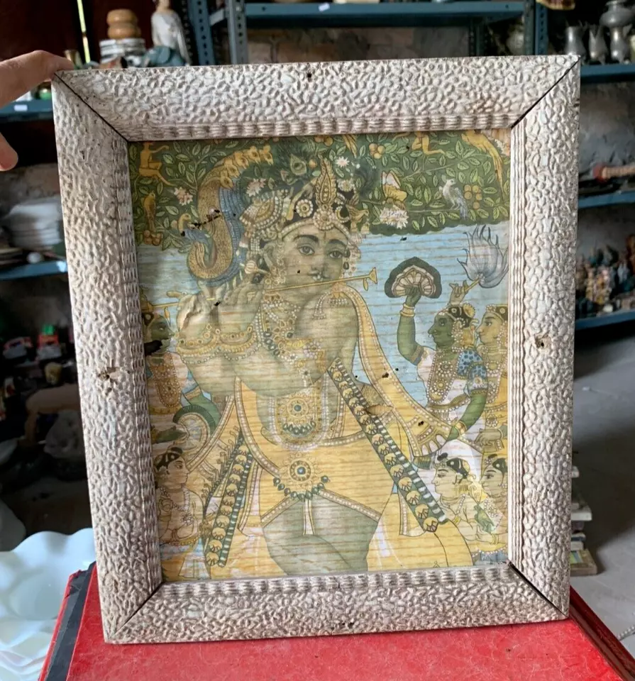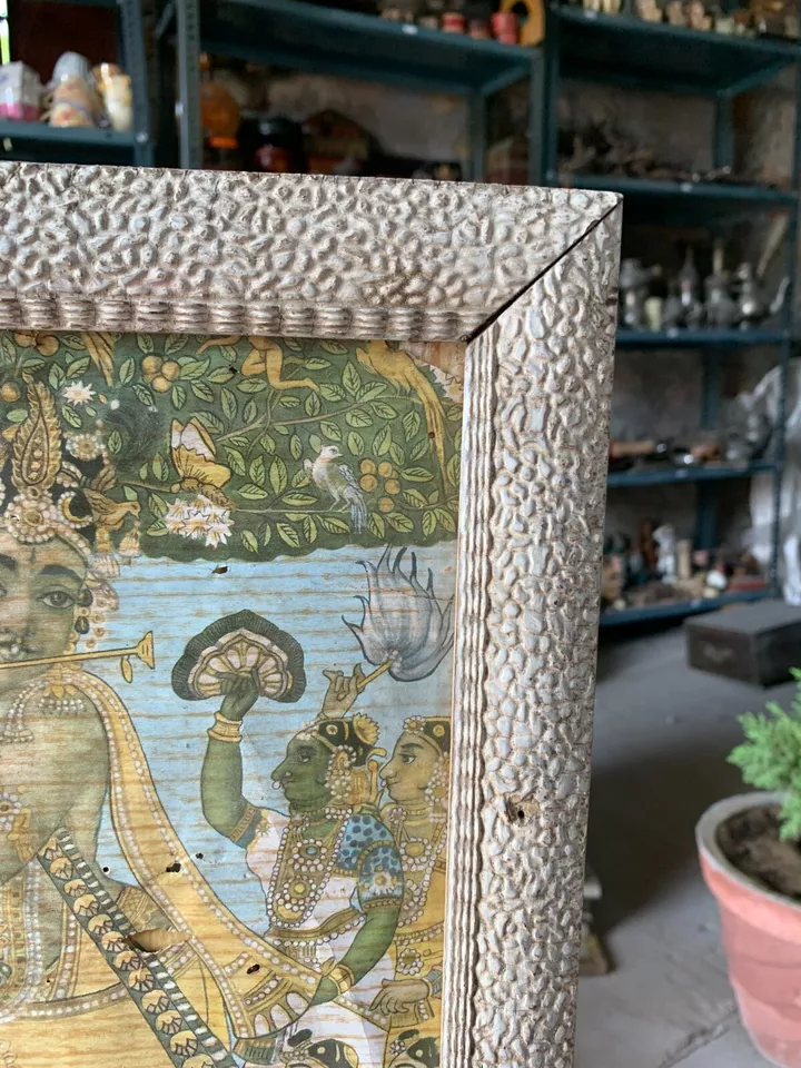 1950’s Vintage Beautiful Floral Wooden Framed Lord Krishna Lithograph Print