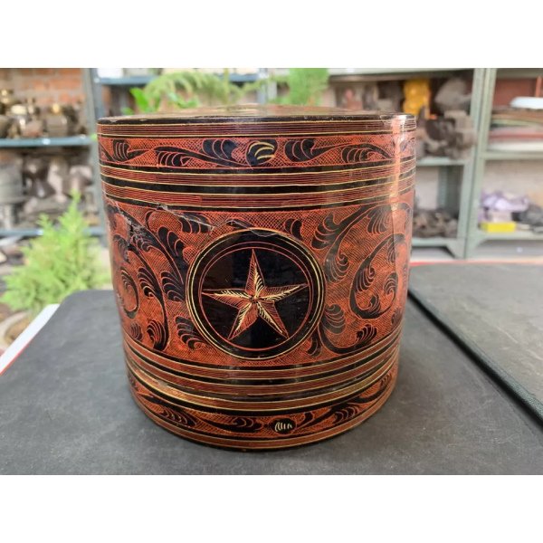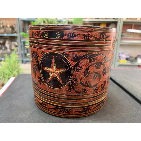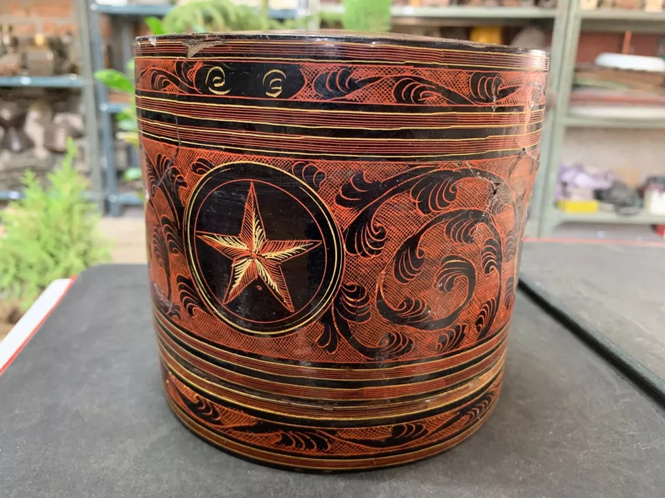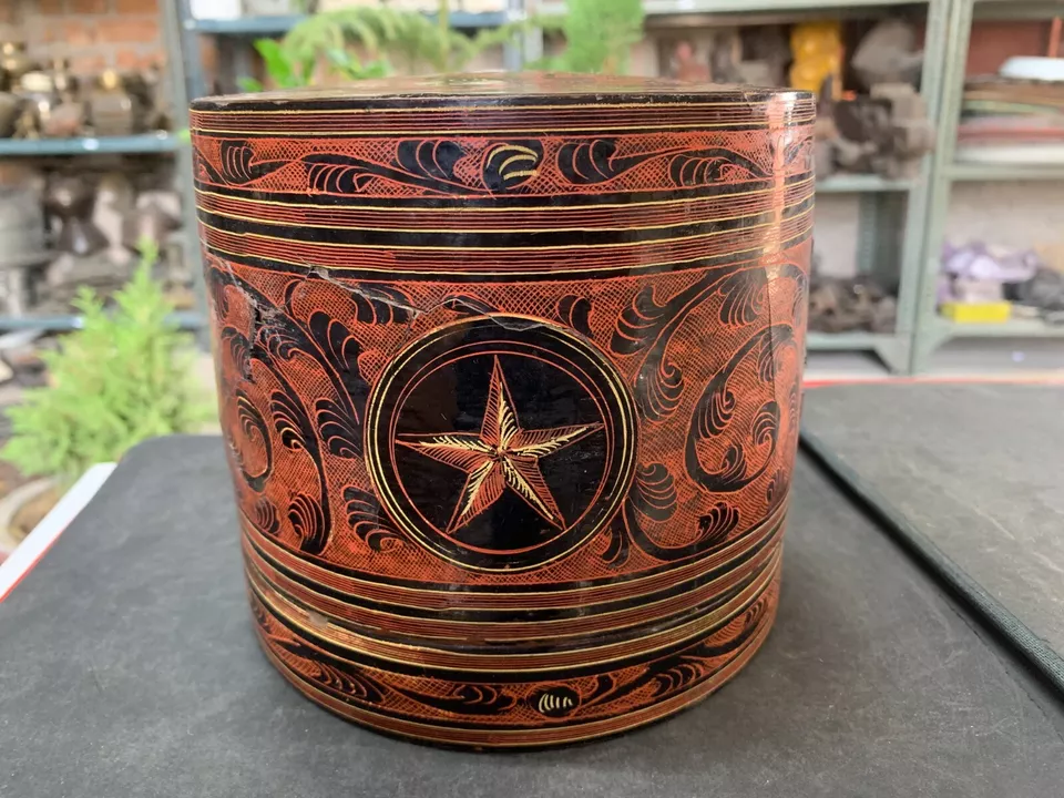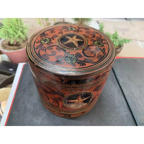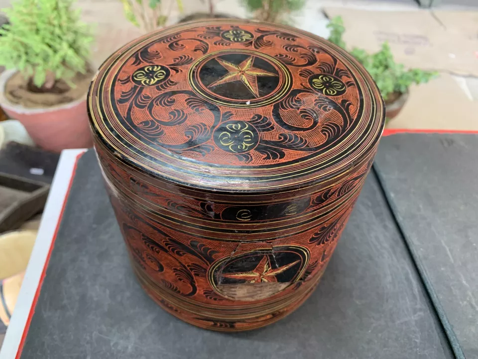 Antique Hand Crafted Burmese Lacquered Bamboo Made Box With 3 Compartments
