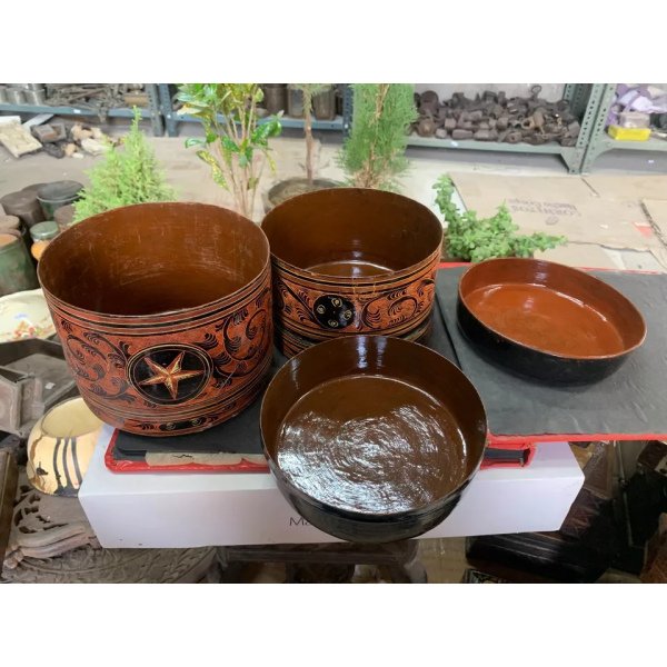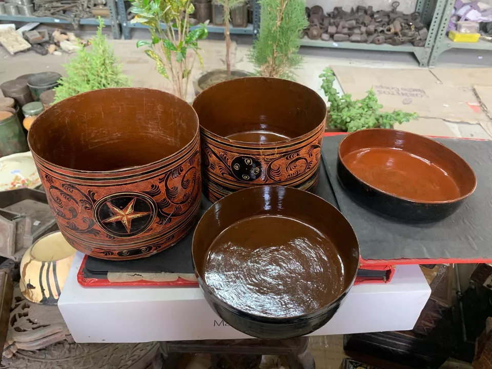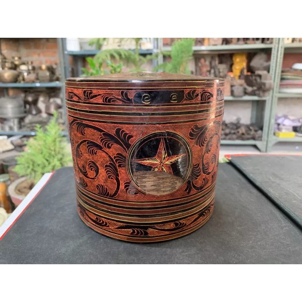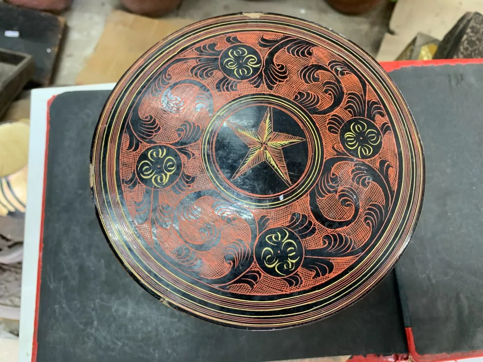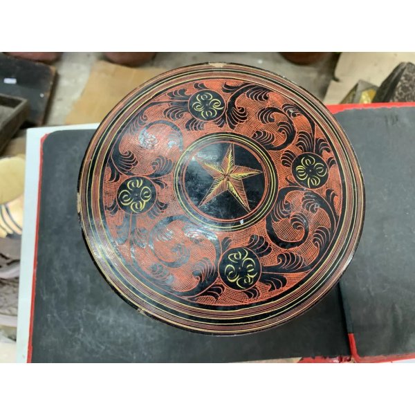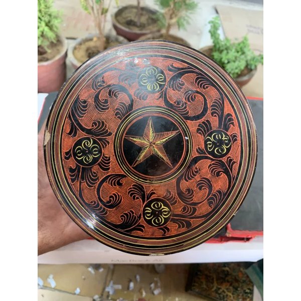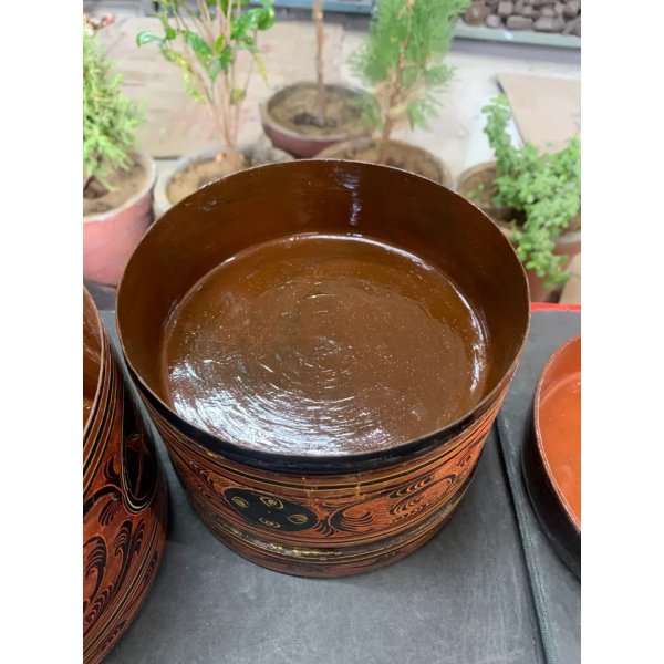Antique Hand Crafted Burmese Lacquered Bamboo Made Box With 3 Compartments