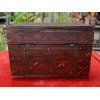 Antique Handcrafted Wooden Brass Inlaid Jewelry Box w/ Hand Carved Floral Motifs