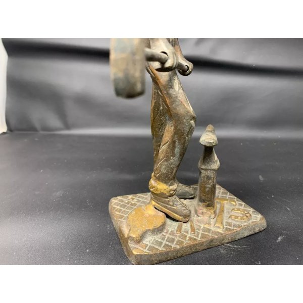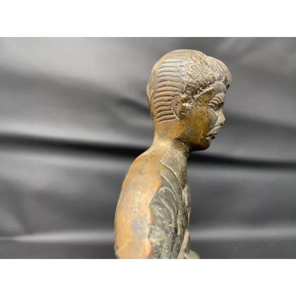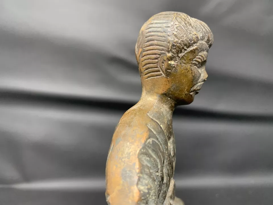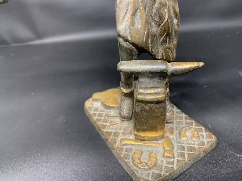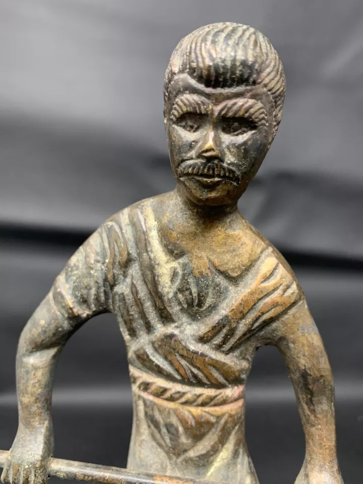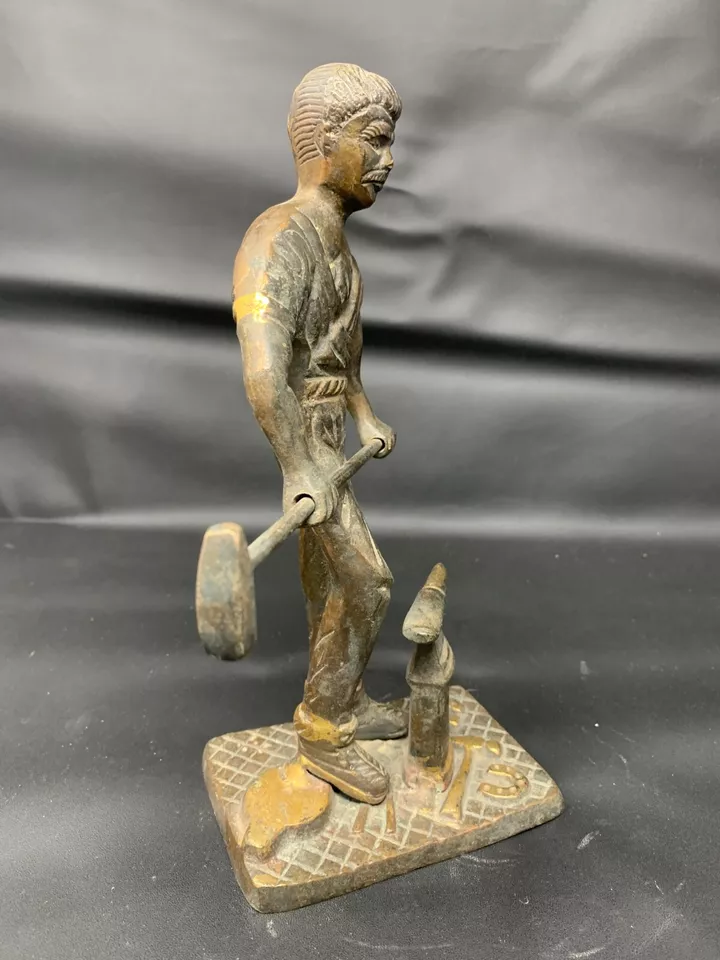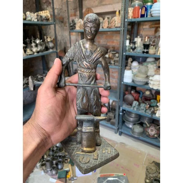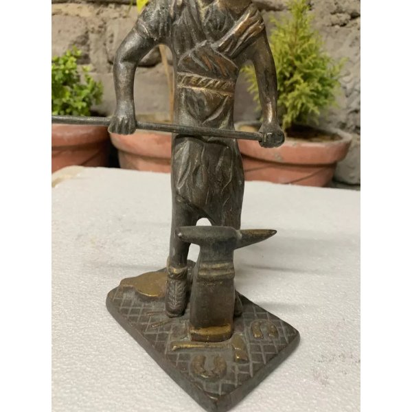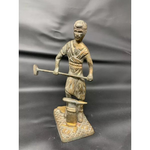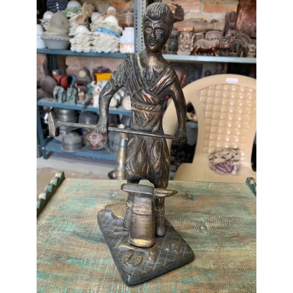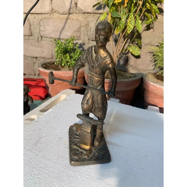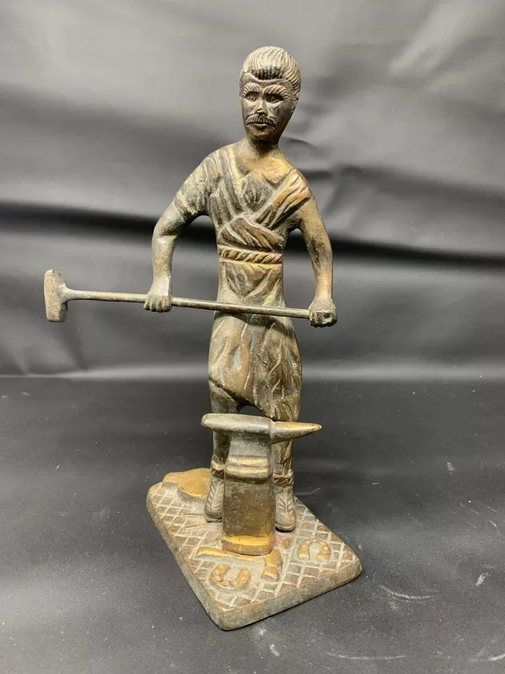Antique Old Hand-crafted Brass Made Blacksmith Holding Tool Figurine Statue