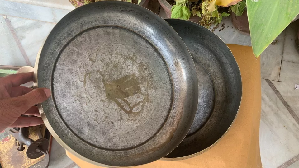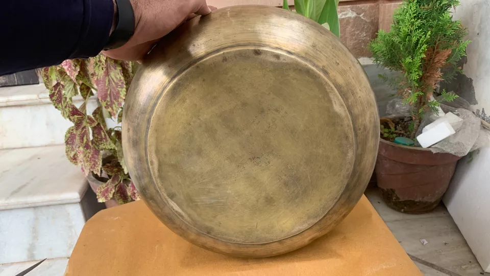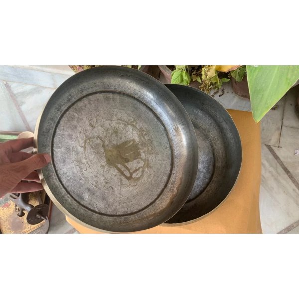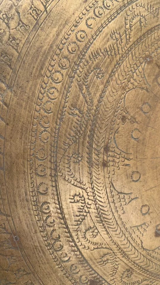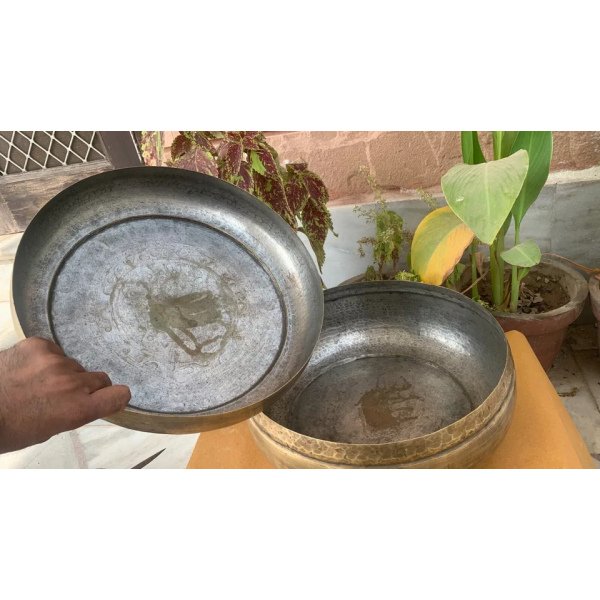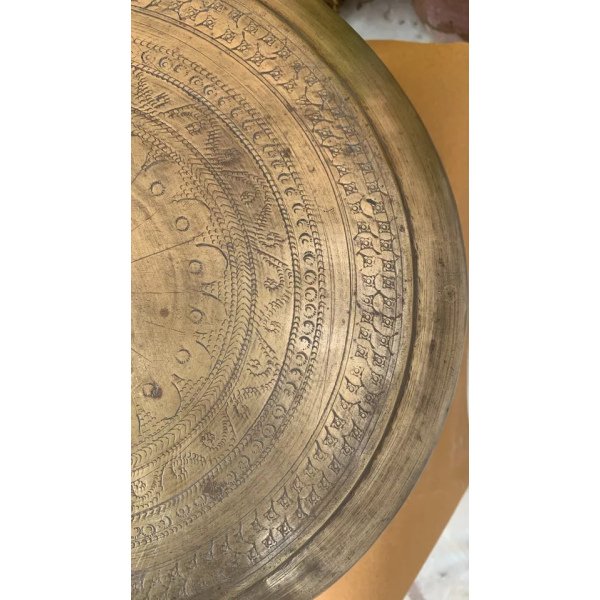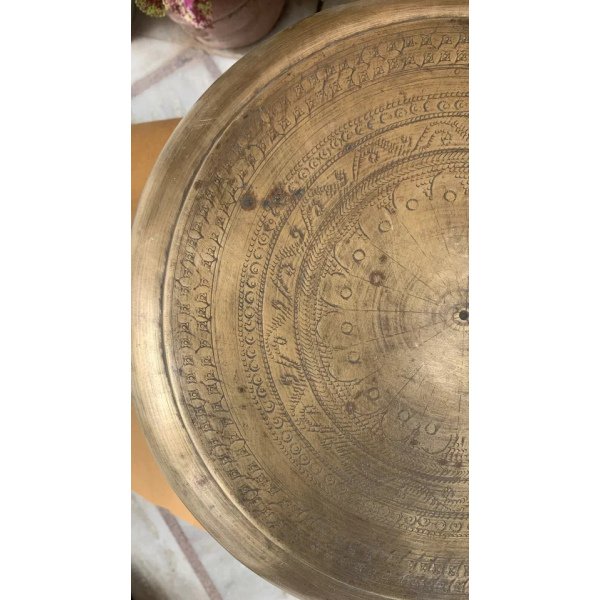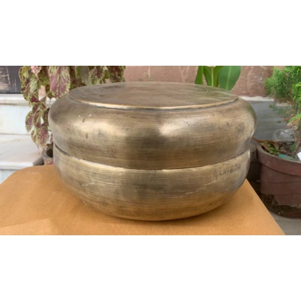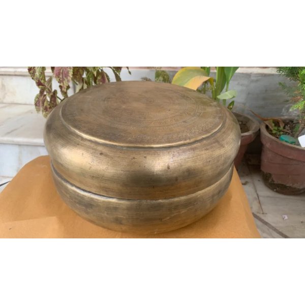 Antique Old Mughal Hand Crafted Brass Base Hand Flower Carving Roti Bread Box