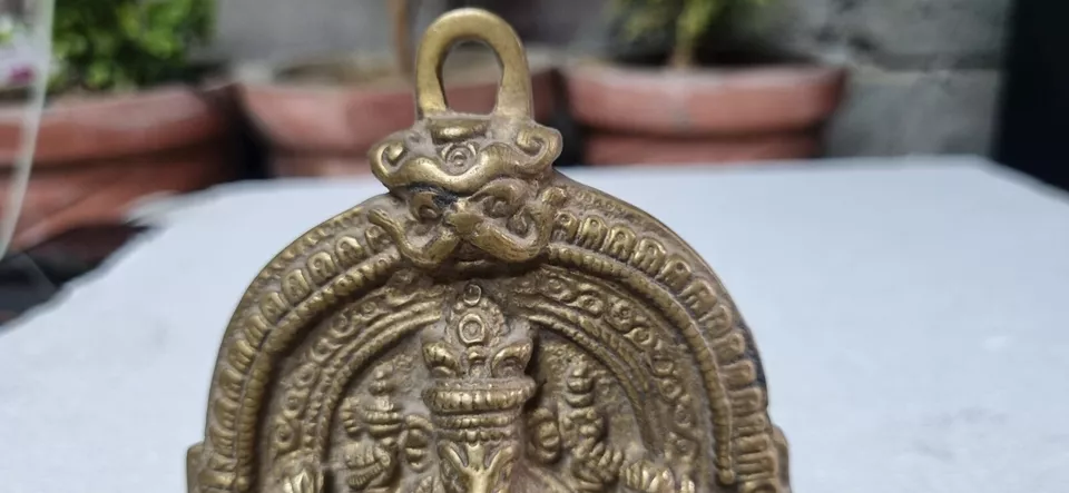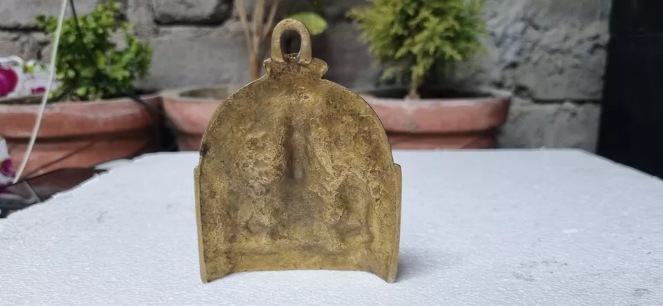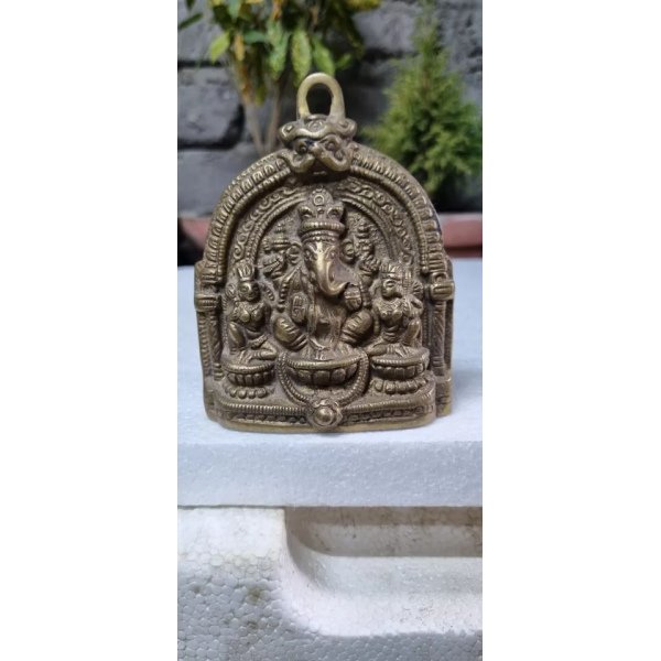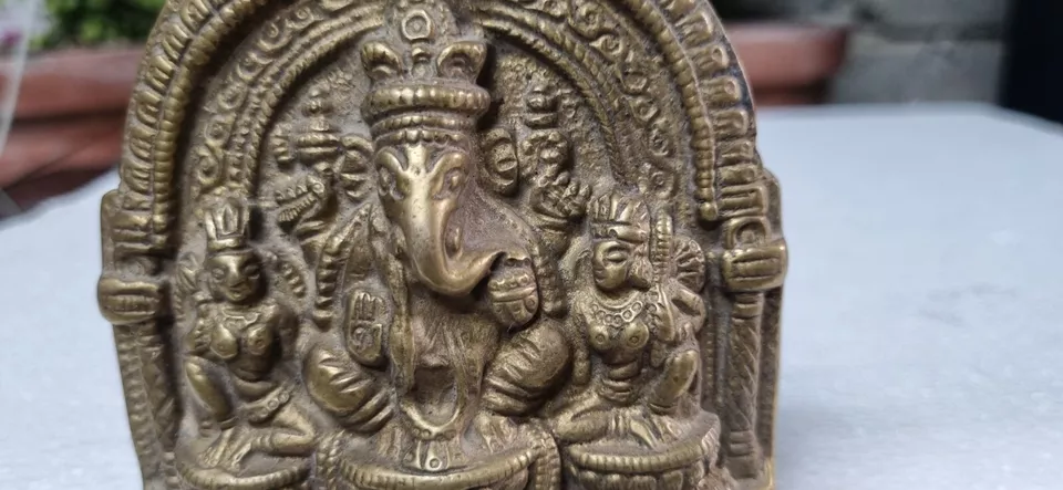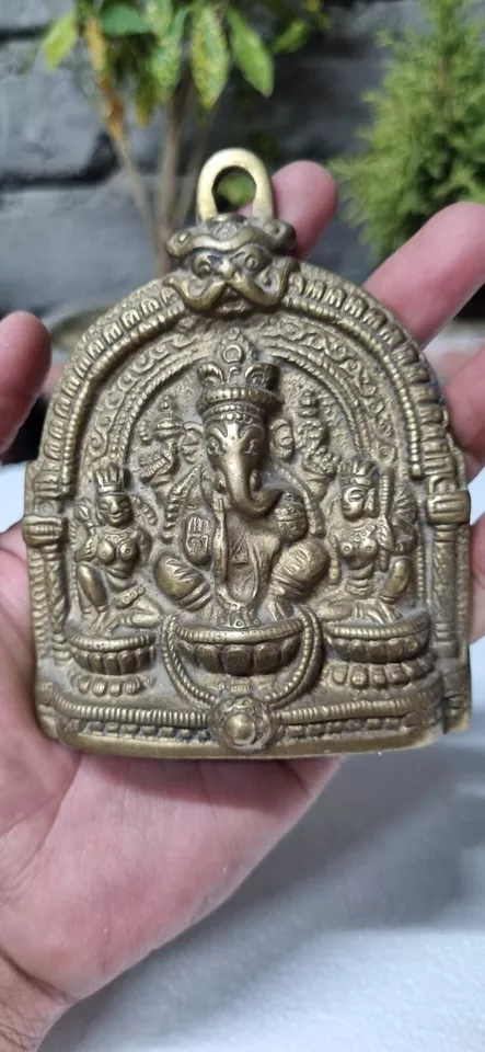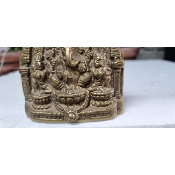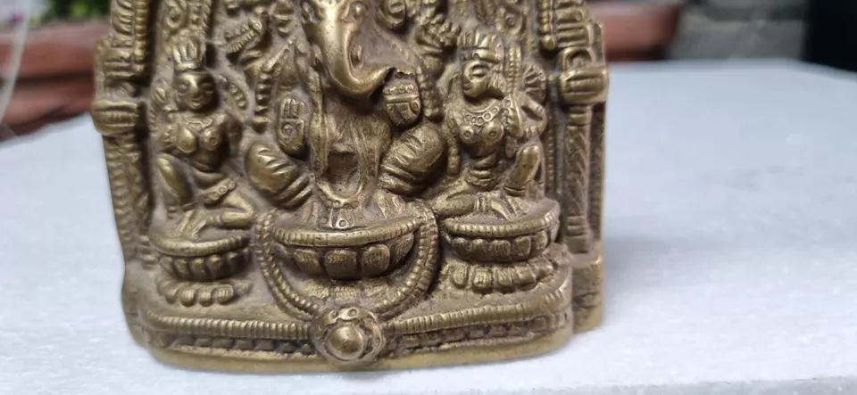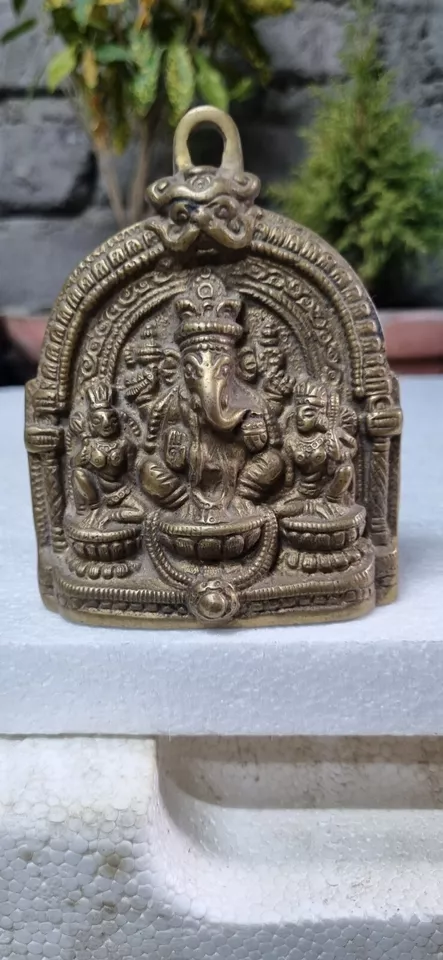 Indian Antique Handcrafted Brass Lord Ganesha with Riddhi Siddhi Figurine Statue
