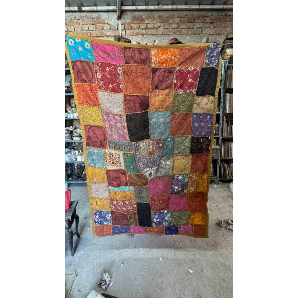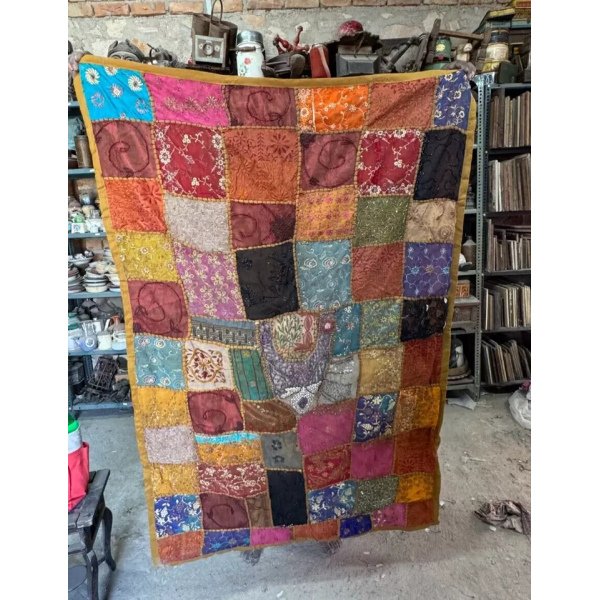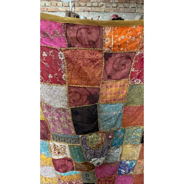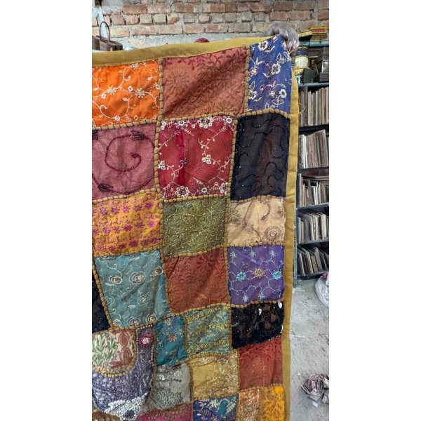 Indian Old Antique Rare Hand Embroidered Work Beaded Wall Hanging & Table Cover