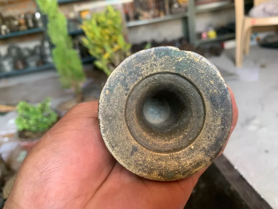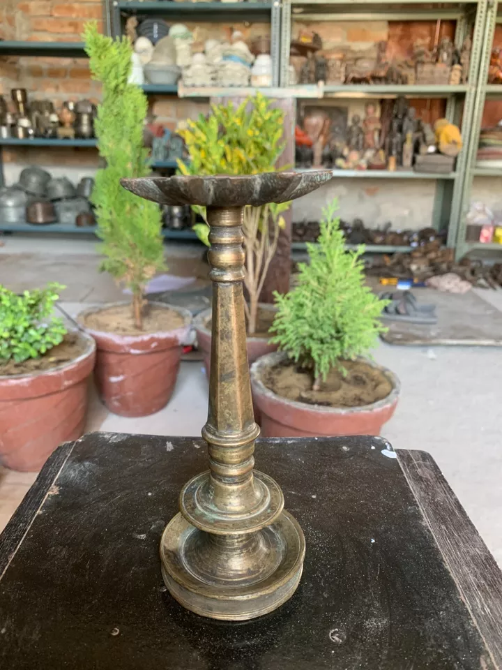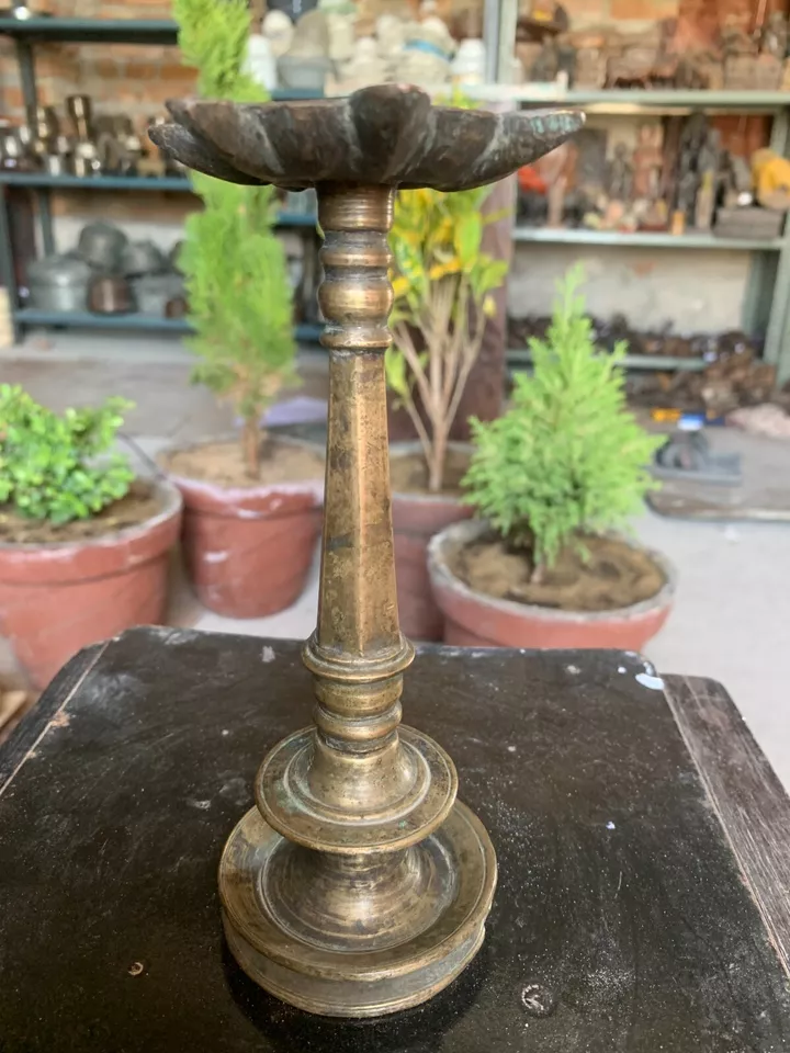 South India Antique Hand Forged Brass Old Hindu Tradition Worship Oil Lamp Stand