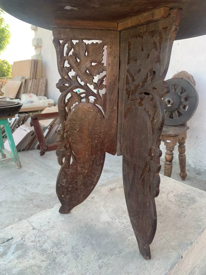 Vintage Handcrafted Wooden Floral Jhali Carved Side Table Round Coffee Table