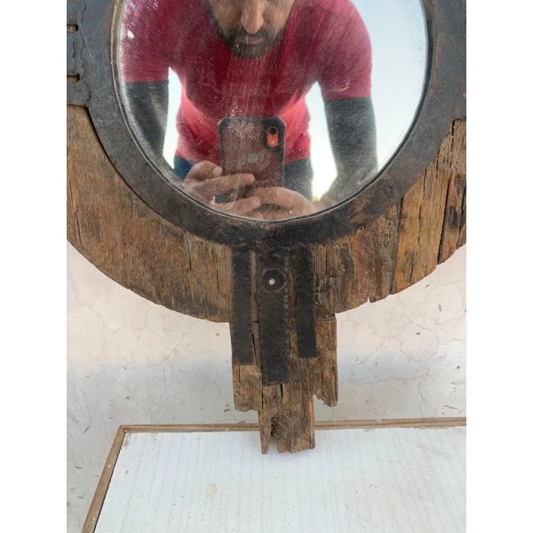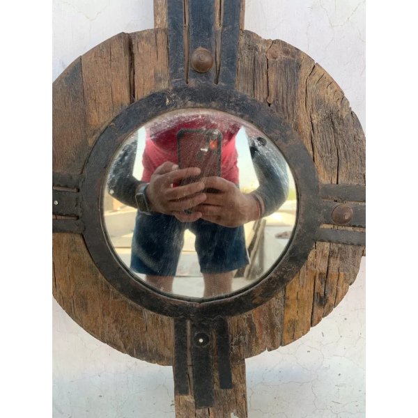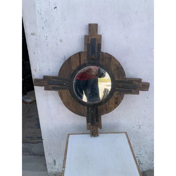 Vintage Old Rustic Wooden Handcrafted Circular Decorative Wall Hanging Mirror