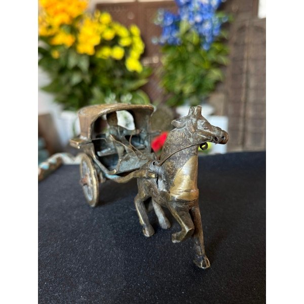 Vintage Rare Brass Made Carriage Horse Cart Decorative Statue Figurine 6×3″