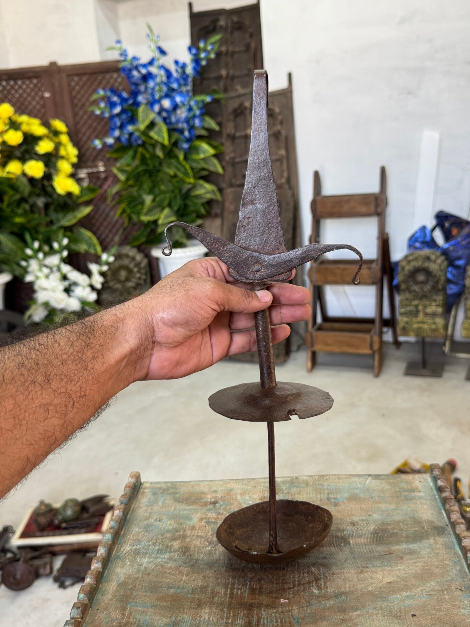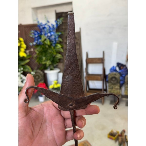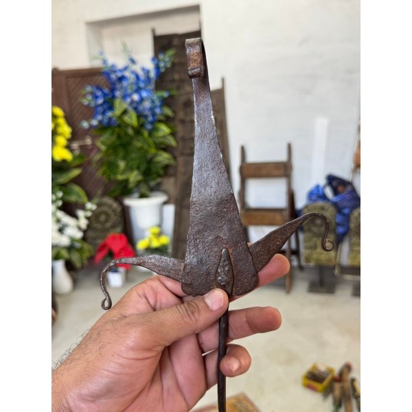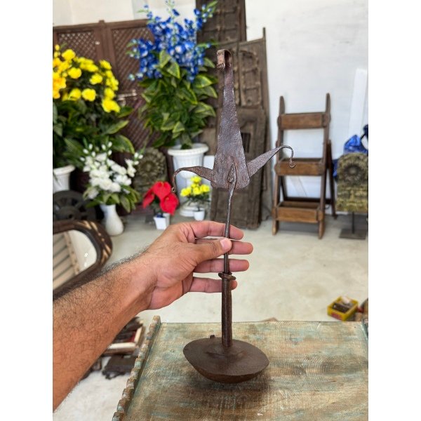 Vintage Rare Collectible Iron Hand Forged Hooks India Trible Hanging Oil Lamp