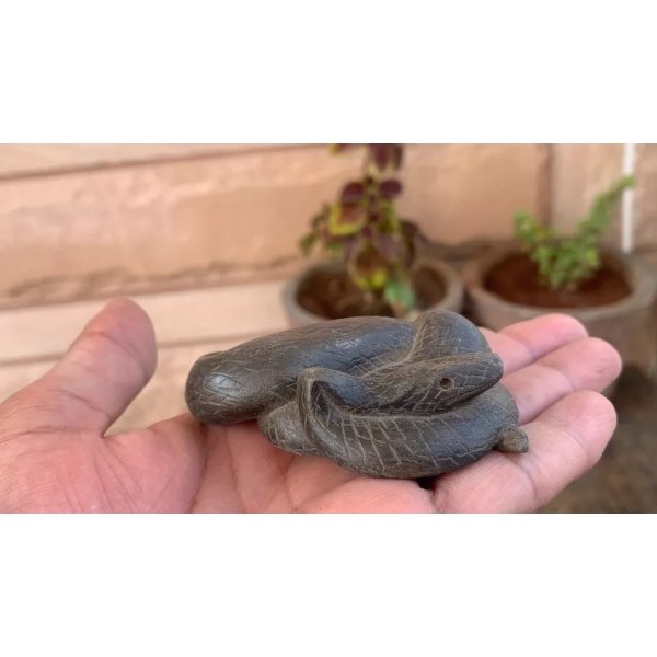 Vintage Rare Collectibles Hand Carved Black One Stone Hindu God Lord Shiva Snake