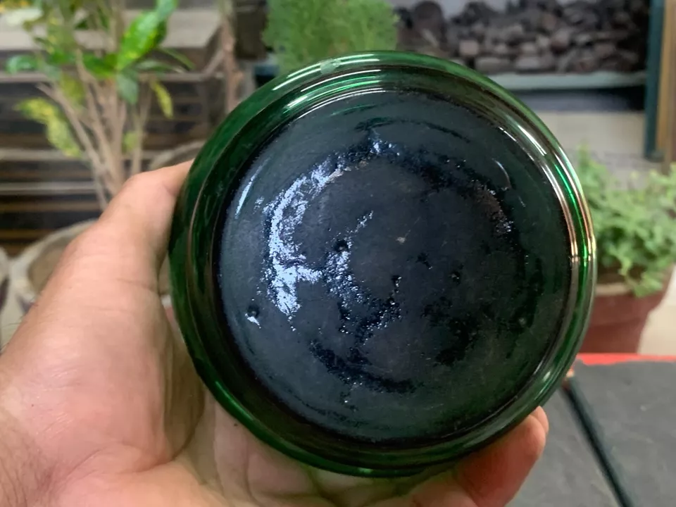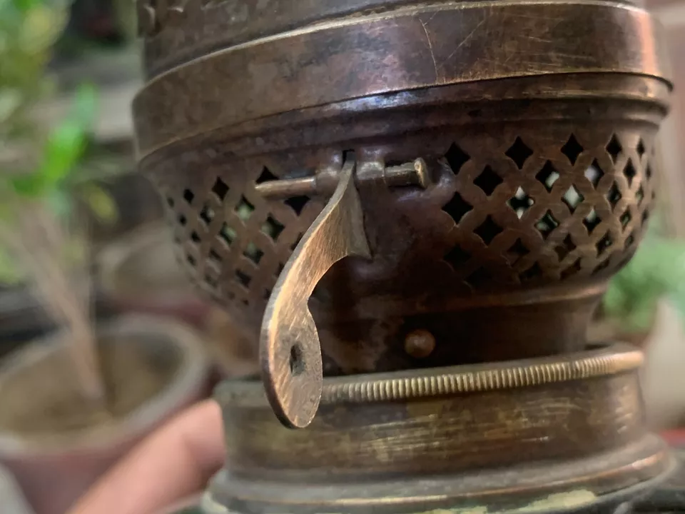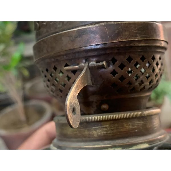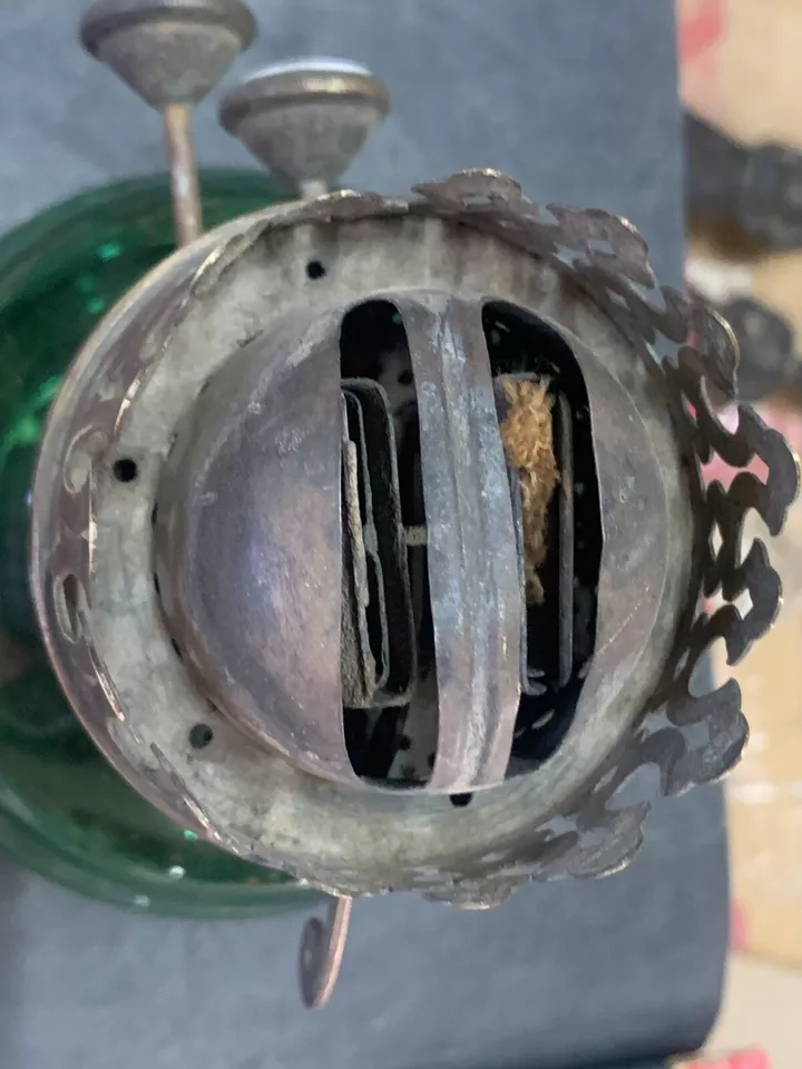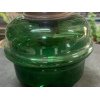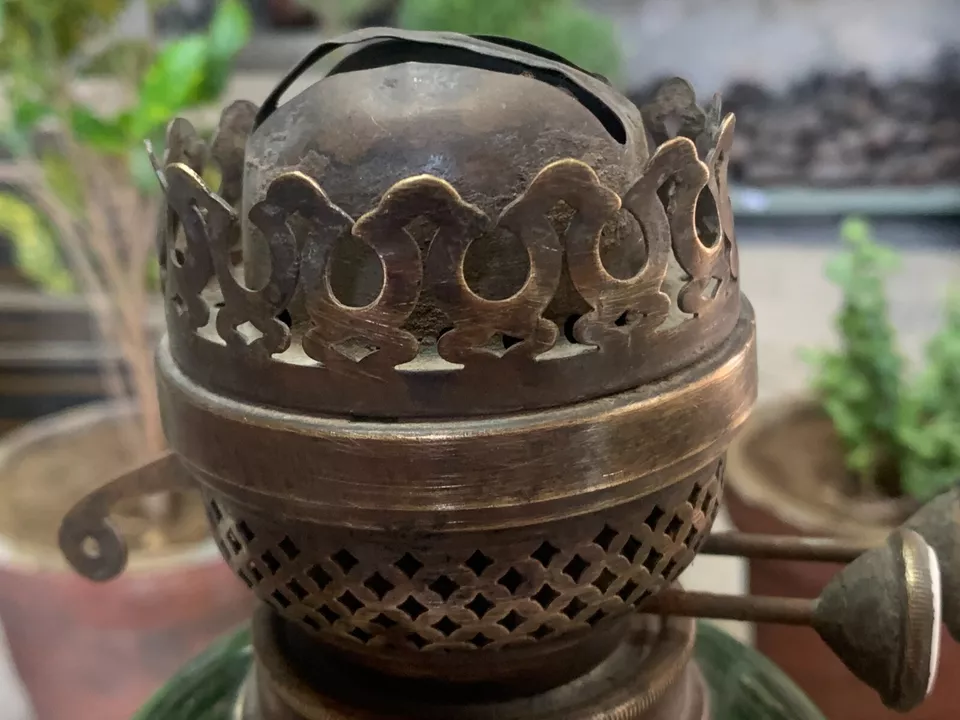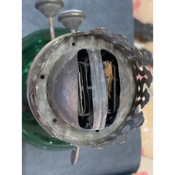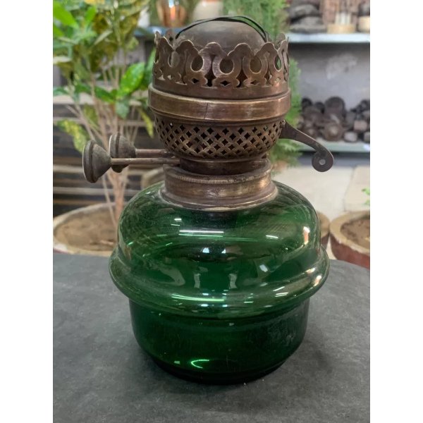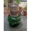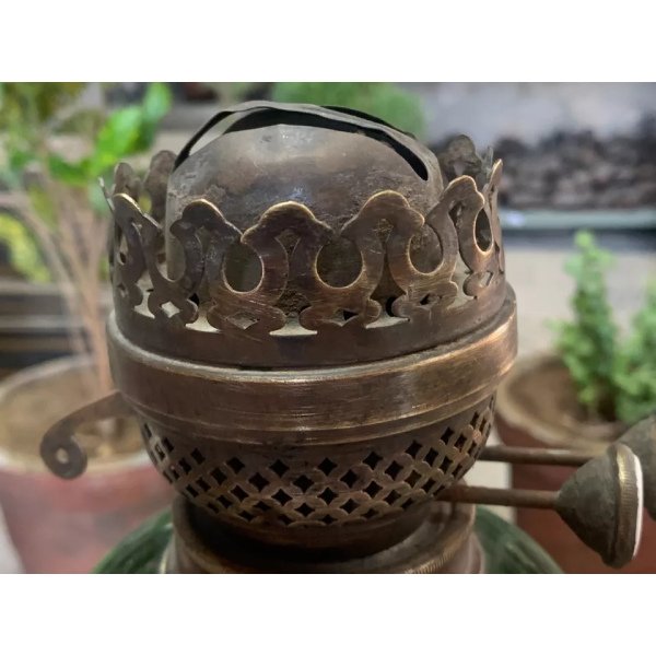 Vintage Rare Green Glass Base Oil Lamp Brass Metal Kerosene Lamp Made In India