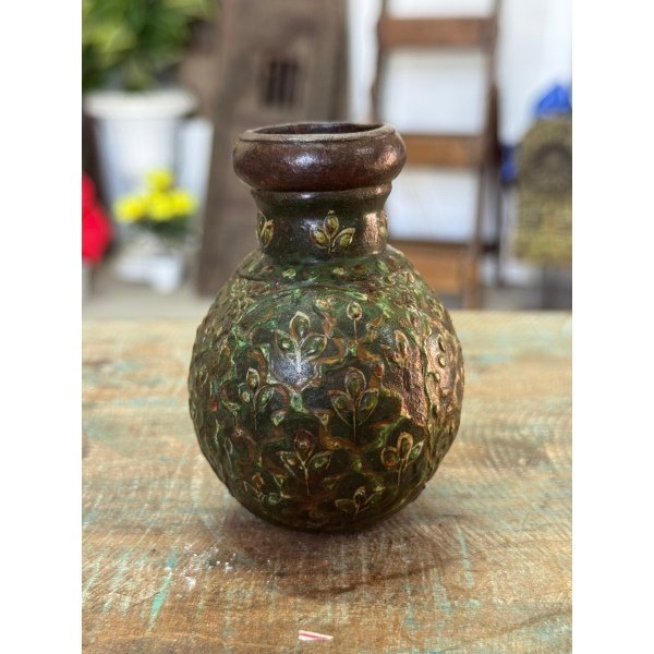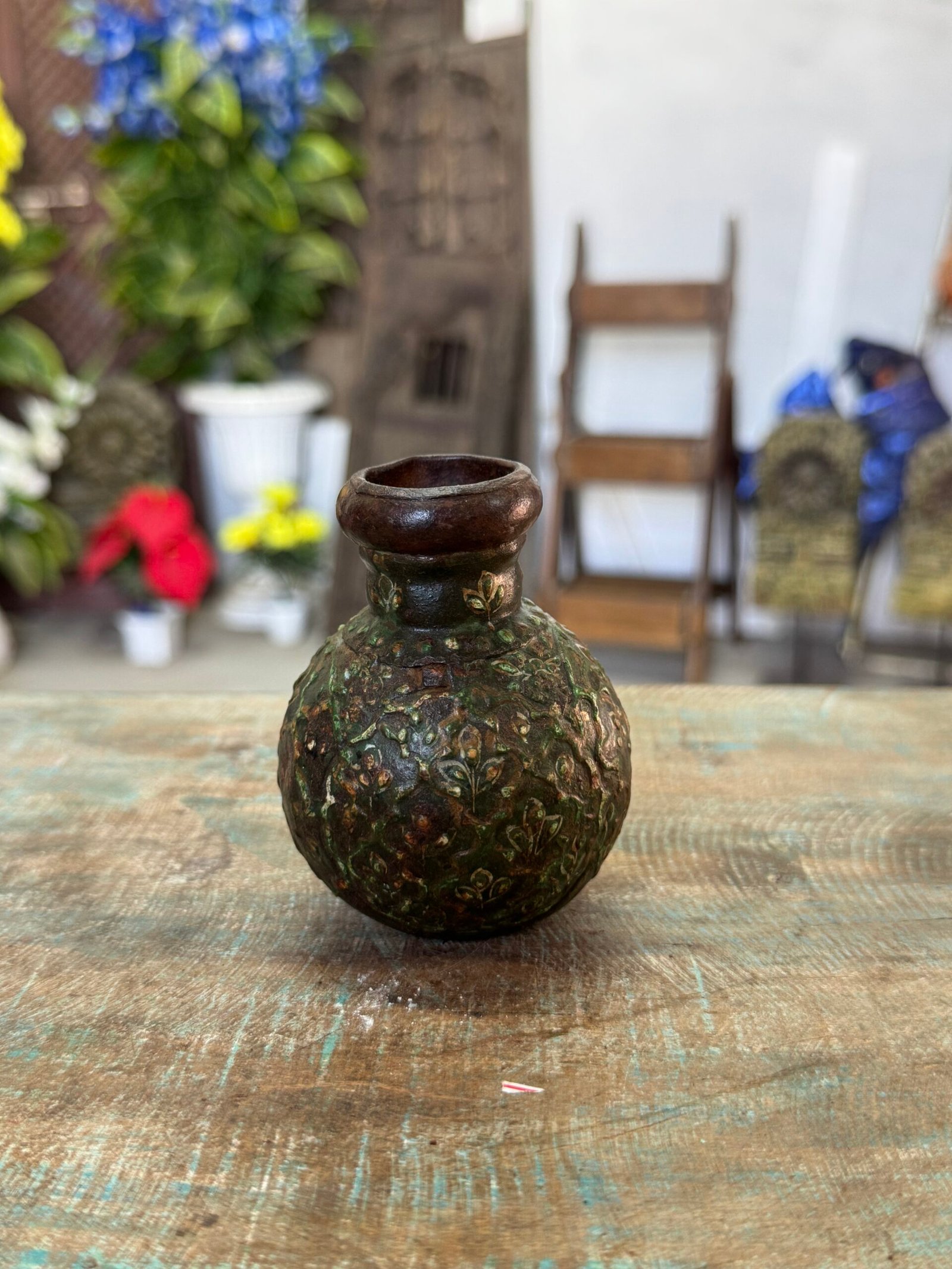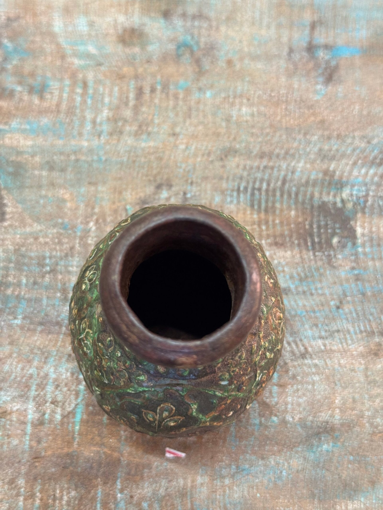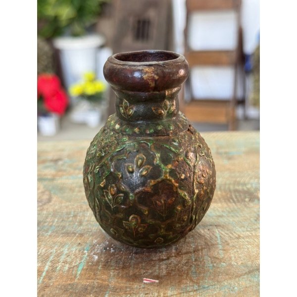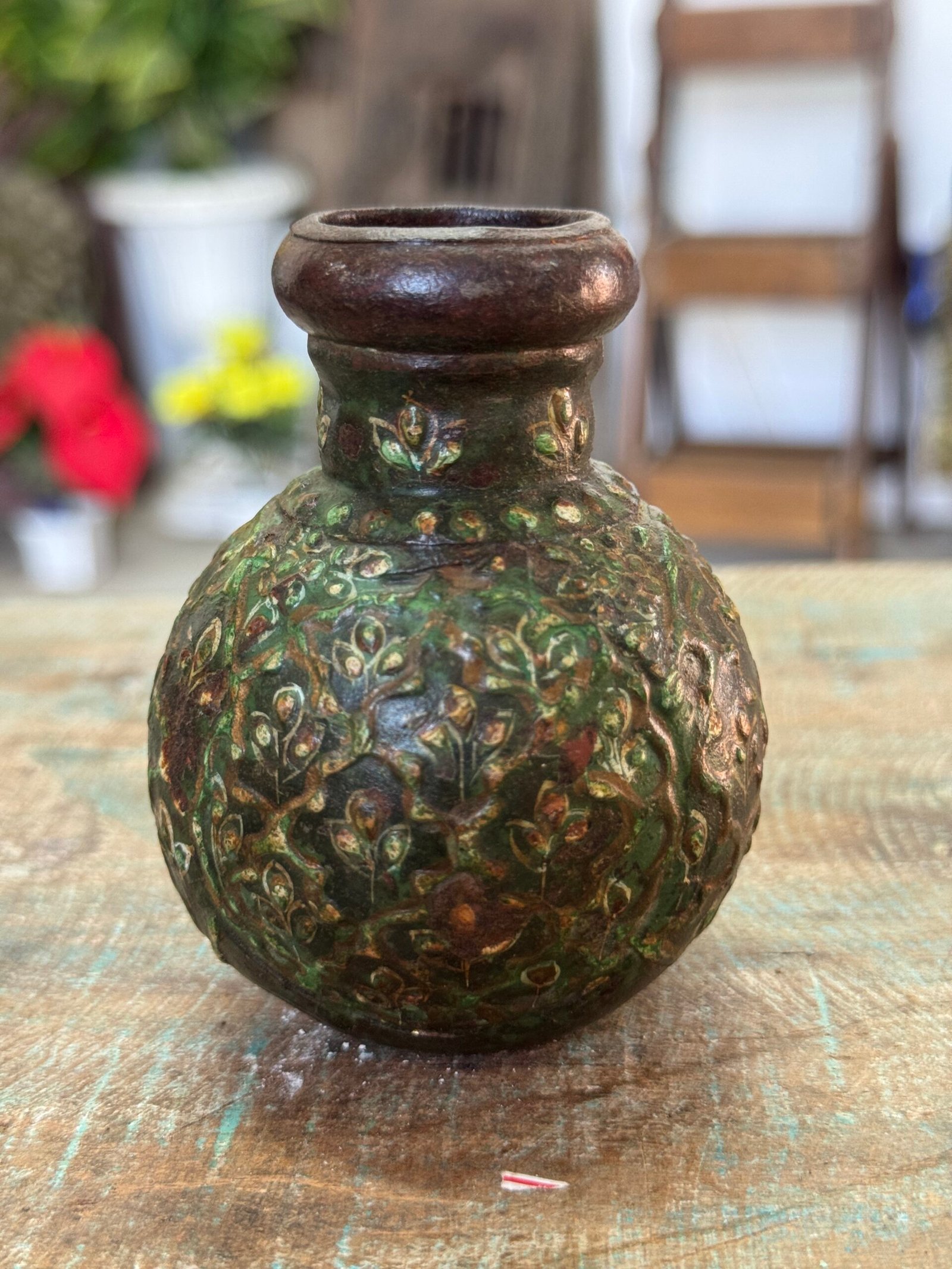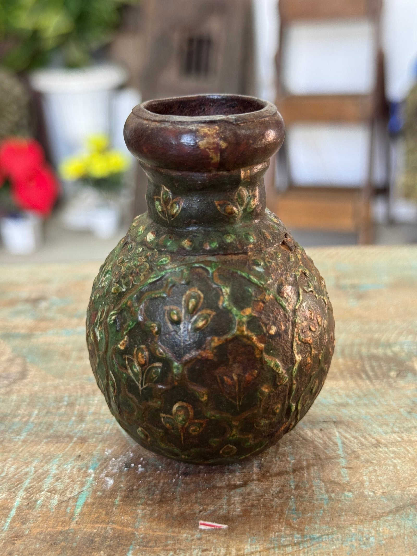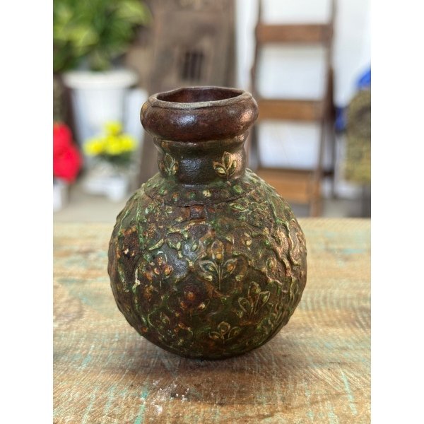 Vintage Rare Made Iron Small Hand Painted Storage Kalash Home Decorative Pot