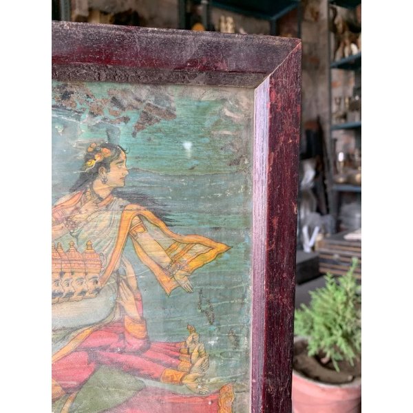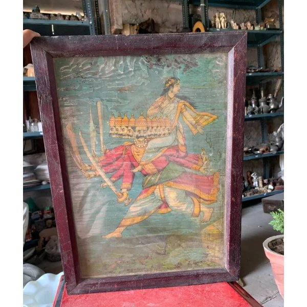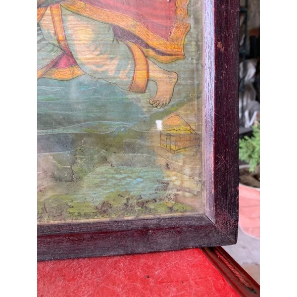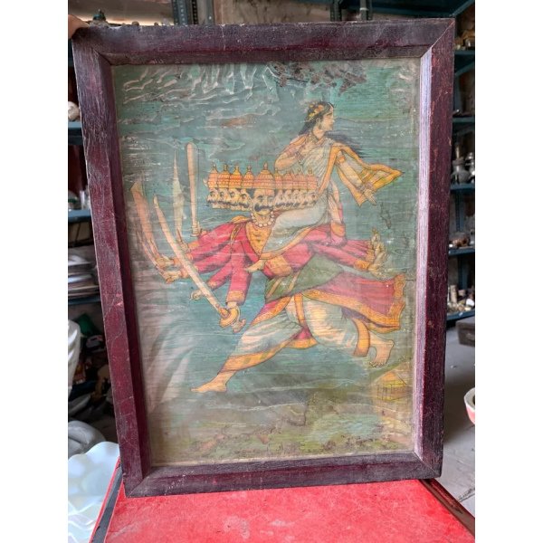 Vintage Ravana Kidnapping Goddess Sita Hindu Mythology Litho Print Wooden Framed